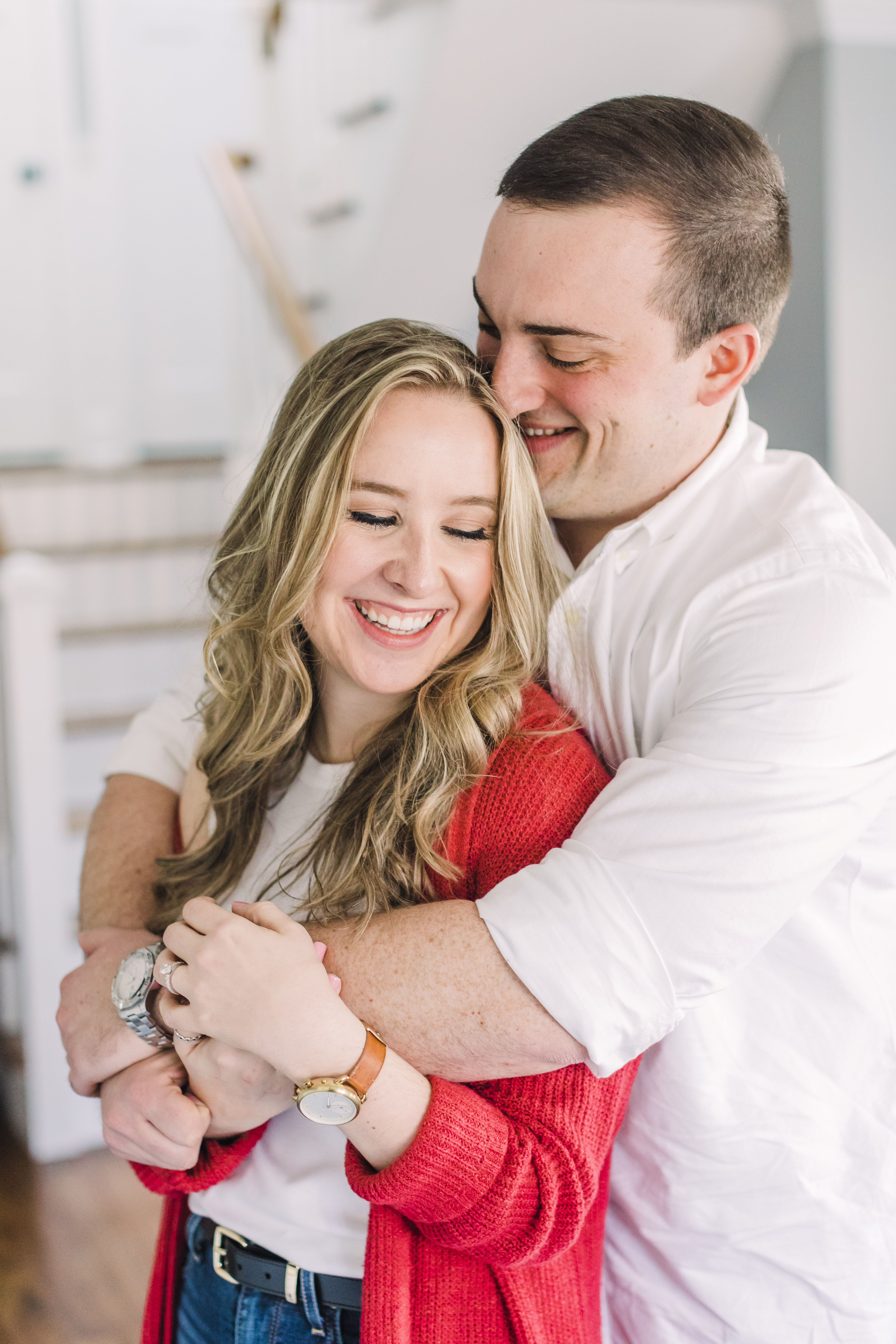 What an adorable in home engagement session I had earlier this week with Caroline and Chris! Caroline and Chris purchased their home last summer and to say it is Pinterest perfect is a serious understatement! These two were thinking they wanted to do something different with their engagement session instead of going to a park...