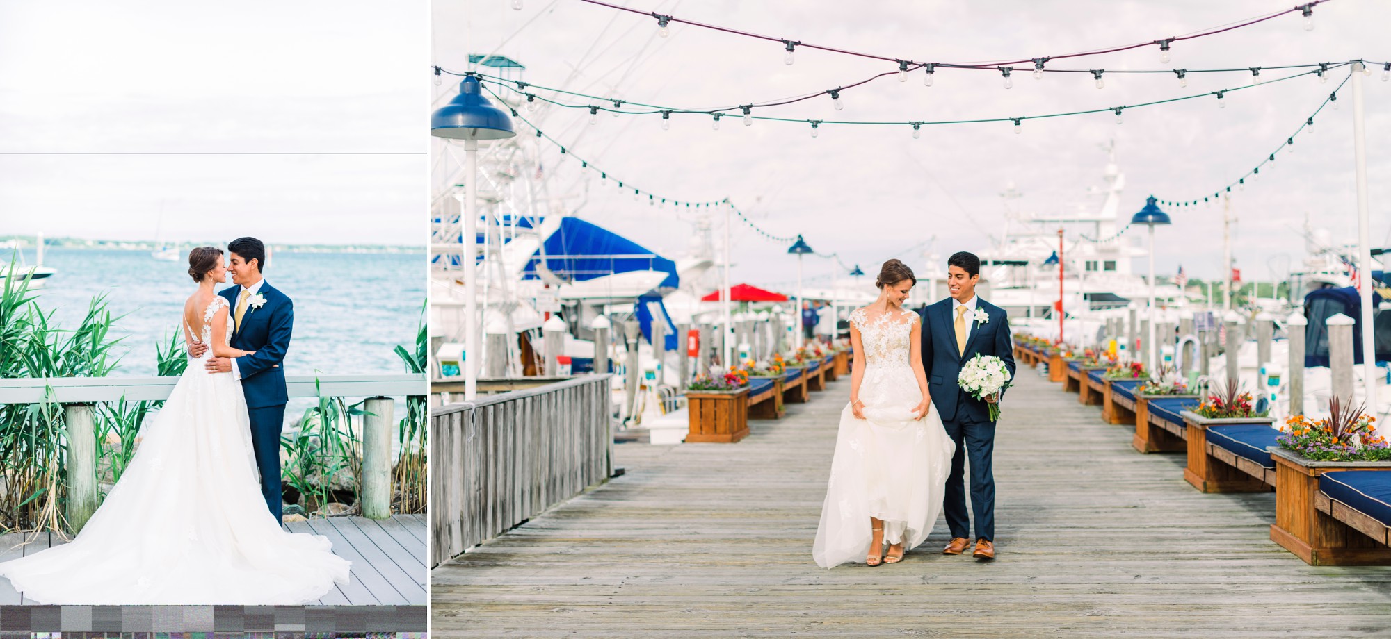 Summer wedding – church ceremony then portraits on site at their venue, Gurney’s Montauk Yacht Club, before their cocktail hour.
